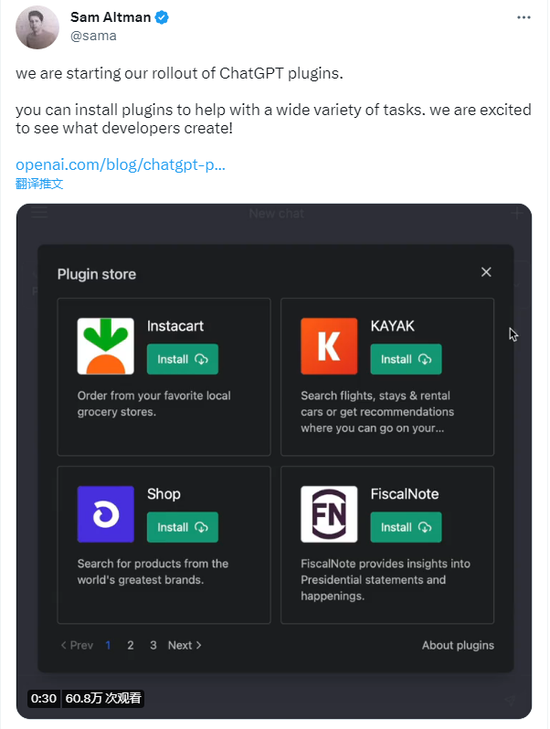 外媒报道中称,这被视为OpenAI通过将ChatGPT转变为开发者平台来扩大其主导地位的最新信号。有资深程序员在推特上表示,“我认为ChatGPT推出的插件功能是对苹果App Store的威胁,OpenAI创造了一个拥有全新盈利方法的平台。”