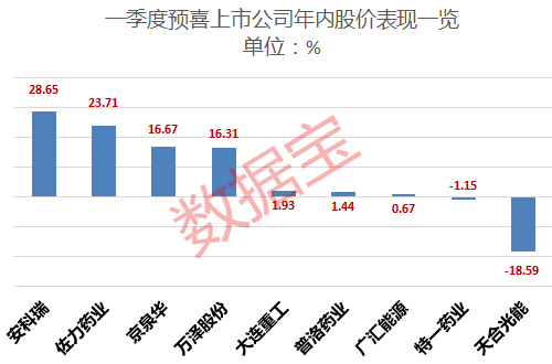 排除年内上市新股,已披露一季报业绩预告个股中,预喜股股价表现明显强于业绩预减股。安科瑞、佐力药业、京泉华、万泽股份年内涨幅居前,均超10%。