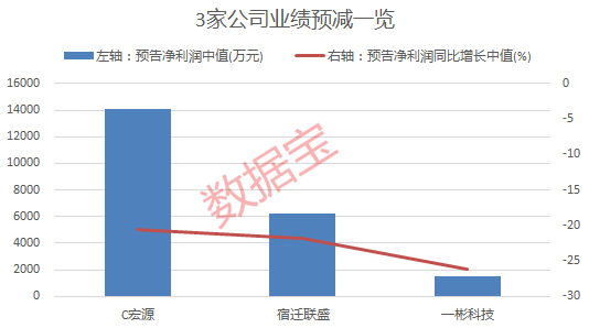 C宏源、宿迁联盛、一彬科技3家公司业绩预减。