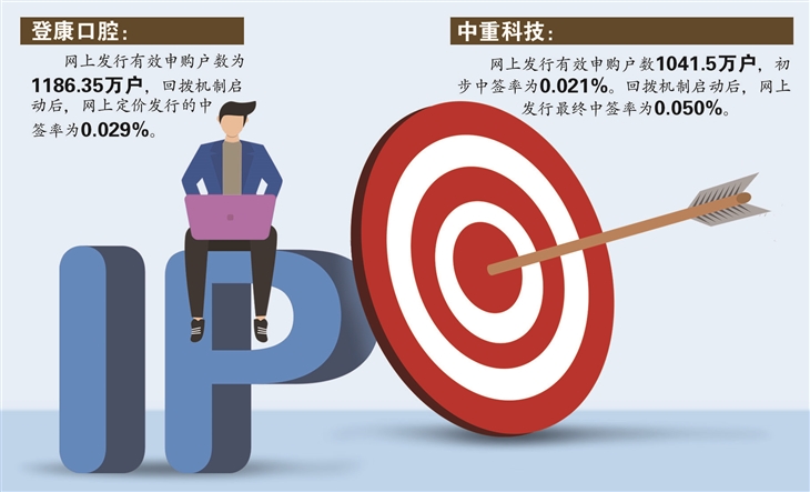 根据中重科技公告,本次网上发行有效申购户数为1041.5万户,网上发行初步中签率为0.021%。由于启动回拨前网上初步有效申购倍数为4663.21倍,超过100倍,因此启动回拨机制,对网下、网上发行的规模进行调节。回拨机制启动后,网下最终发行数量占发行总量的30%,网上占发行总量的70%,网上发行最终中签率为0.050%。