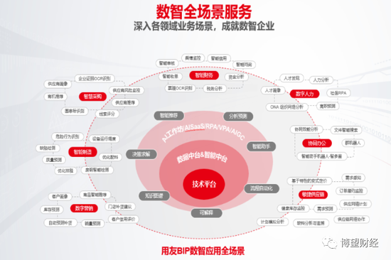 用友融合移动互联网、云计算、大数据、人工智能、物联网、区块链等新一代信息技术,按照商业创新平台(BIP)的理念,充分发挥技术与商业相结合的优势,通过构建和运营全球领先(数字化、智能化、全球化、社会化、生态化、平台化、高弹性、安全可信)的商业创新平台YonBIP,面向企业与公共组织提供数智平台底座及财务、人力、协同、营销、采购、供应链、制造、研发、资产、项目等多领域、跨行业的企业云服务,使能企业的数智化商业创新(包括业务创新和管理变革)变得简单、便捷、大众化、社会化。公司的云服务经营模式为向企业与公共组织客户提供PaaS、SaaS、BaaS、DaaS等服务,根据客户需求可以采用公有云、私有云或混合云技术架构的部署方式。