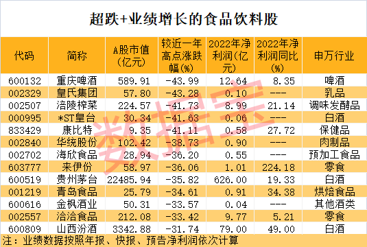 食品饮料板块年内跑输大盘,超跌绩优股有哪些?