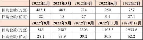 而在2022年,为了对冲机构和大股东减持带来的冲击,腾讯从开年第一天一直回购至最后一天,全年回购了1.06亿股,回购金额高达334.4亿。