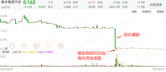 截至3月23日,鼎丰集团汽车的股价为0.17元,1月9日买入的南向资金全部亏损近30%。