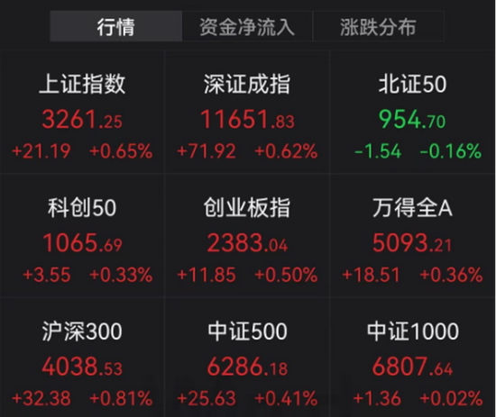 其他板块中,存储芯片概念股全天强势,普冉股份、江波龙、同有科技均20CM涨停。金融股午后异动,红塔证券涨超5%,邮储银行涨超3%。煤炭、油气、汽车、建材等板块涨幅居前。