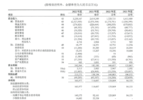 伊泰煤炭公布2022年业绩,营业收入约人民币606.47亿元(单位下同),同比增长19.68%;归属于上市公司股东的净利润约109.75亿元,同比增长26.98%。全年累计生产商品煤4830.53万吨,同比增加11.8%;销售煤炭6600.05万吨,同比增加 4.91%。完成掘进总掘尺10.95万米,同比增加27.92%。铁路板块累计发运煤炭 9053.16万吨,煤化工板块累计生产各类油品和化工品140.06万吨,销售各类油品和化工品145.61万吨。