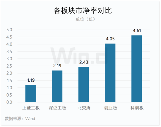 截至2023年一季度末,创业板最新市净率为4.05倍,低于科创板,高于沪深主板。