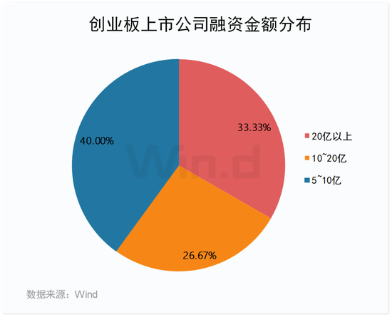 2023年一季度创业板公司IPO合计融资258.03亿元,同比下降57.15%。其中5家IPO融资金额在20亿以上,4家IPO融资金额为10~20亿元;IPO融资5亿以下的数量最多,共6家,占比40%。