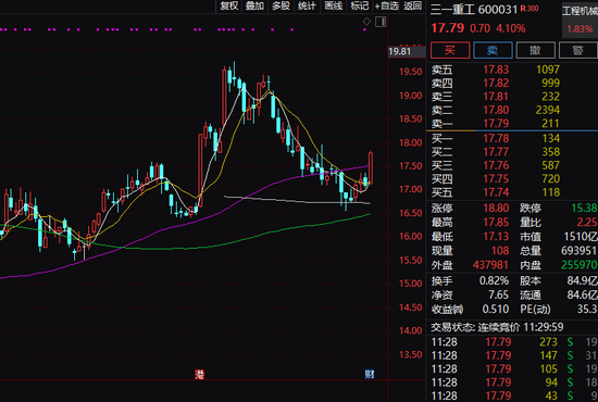 三一重工上午收盘涨4.10%。三一重工上周五晚间发布的2022年报显示,2022年全年实现营业总收入约808.22亿元,归属于上市公司股东的净利润42.73亿元,经营活动净现金流40.99亿元。公司年报称,公司经营健康,风险控制和经营质量保持在较高水平。