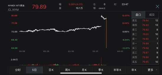 受相关消息影响,WTI原油周一高开6.4%,随后日内涨幅扩大至7%,冲高至81美元/桶上方。