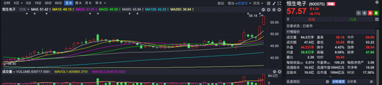 此外,老牌公司恒生电子今天大涨8.17%,市值突破1000亿大关,金证股份也迎来涨停。