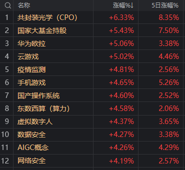 这个板块,实际上是AI大热的背景下,被机构挖掘出的题材。光通信、光模块等,炒的都是CPO(共封光)技术。CPO即共封装光学,或称为光电共封装技术、芯片级光互连技术,是一种可代替传统前面板可插拔光模块的新型超小型高密度光模块技术,能以更低成本和功耗,将从电子芯片发出的高速电信号转换成光信号,并传输到远端。而与CPO相关的股票,就是CPO概念股。