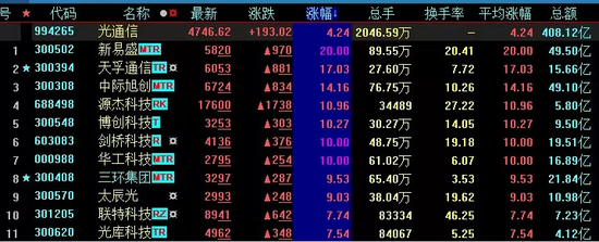 其他方面,光通信板块也是出现了明显赚钱效应的,剑桥科技、新易盛、中际旭创、天孚通信已经被称为“光通信四杰”,今年以来都已经实现翻倍,剑桥科技更是涨了两倍多。