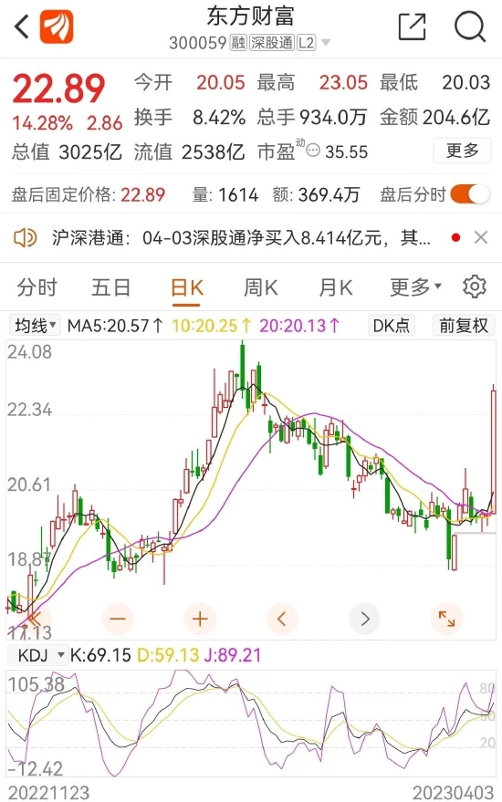 4月3日,东方财富大涨14.28%,成交额达到204.58亿元,创下历史新高。