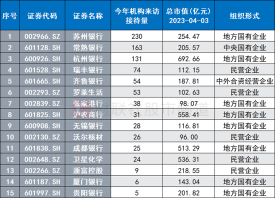 注:今年机构来访接待量居前的互联金融股(截至4月3日收盘)