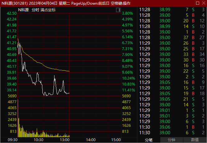 新股科源制药上午盘中破发,盘中跌幅一度达到12%。