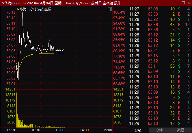 新股华海诚科上午也大涨,盘中涨幅一度超过100%。