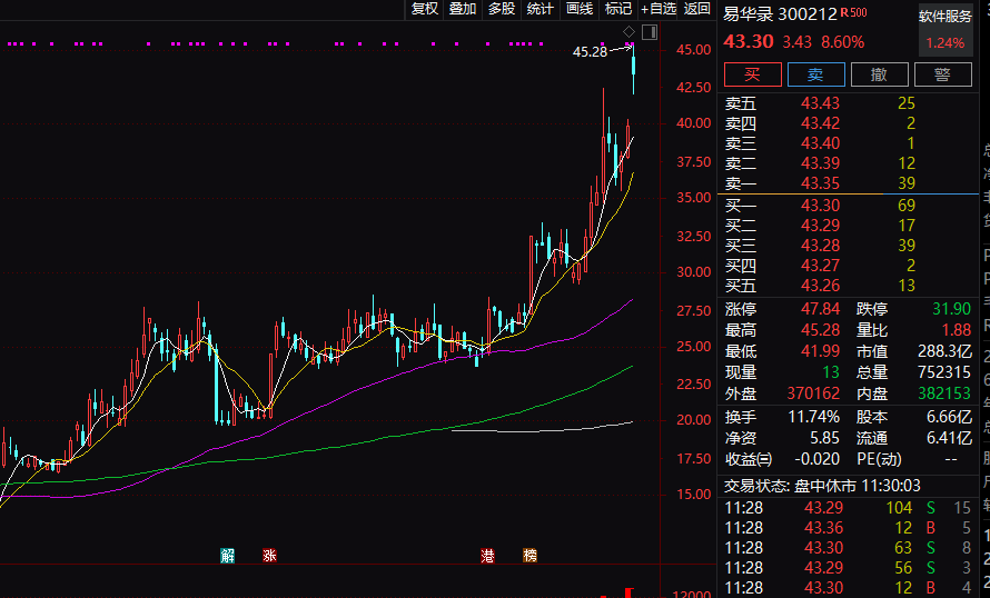 受到上述公告消息影响,易华录股价今天上午大涨,盘中涨幅一度超过13%,后涨幅收窄,截至上午收盘,涨8.60%。
