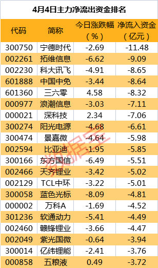 数据宝统计,17股遭主力资金净流出超4亿元。宁德时代主力资金净流出11.48亿元居首。紧随其后为拓维信息、科大讯飞、中国中免,分别为9.09亿元、8.65亿元、8.64亿元。