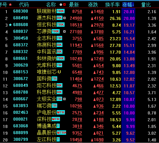 除了中芯国际外,今天芯片概念股全线走强,联瑞新材、源杰科技、芯源微、全志科技、和林微纳等个股涨幅超10%。