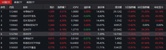 此外,还有半导体ETF(512480)、芯片ETF(159995)等都值得关注。