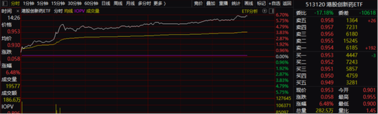 今天医药股又涨疯了。港股创新药ETF一度狂涨近7%。