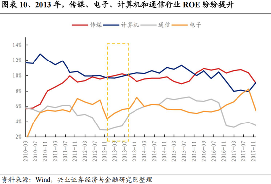 整体来看,随着景气向上的趋势得到确认,叠加政策延续支持,TMT板块成为彼时市场的最强主线。2013/4/1-2013/10/8,传媒、计算机、通信和电子录得125.12%、52.04%、33.47%、23.87%的涨幅,远超同期万得全A的8.15%。拆分盈利与估值来看,尽管“拔估值”依然是上涨的主要动力,但该阶段中基本面对股价的贡献较2-3月份明显上升。一方面,中观数据和财报不断验证TMT板块景气上行,另一方面,利好政策和事件持续出台,不断提振市场风险偏好。期间市场于6月遭遇“钱荒”,但得益于过硬的景气支撑,TMT板块整体回撤较小,传媒更是仅下跌2%不到。