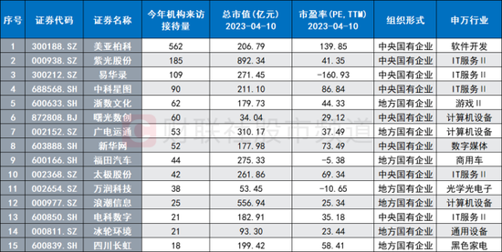 注:今年以来机构关注度居前的相关概念股(截至4月10日)