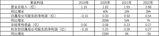 2019年-2022年索辰科技营业收入为1.16亿、1.63亿、1.93亿、2.68亿,归母净利润为-0.13亿、0.33亿、0.50亿、0.54亿,扣非归母净利润为-0.18亿、0.25亿