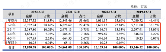 且账龄较长,应收账款账龄1年以上的比例分别为53.56%、44.30%、48.33%。