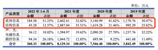 2019年以来,仿真产品的收入占比越来越高,2022年两块业务已经平分秋色了。