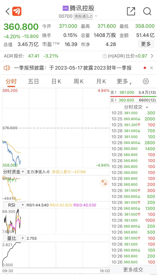 今日早盘,腾讯低开1.49%,随后跌幅不断扩大,盘中一度跌超4%,市值一度蒸发1500亿港元。