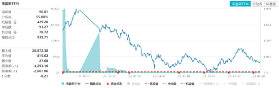 Wind数据显示,截至4月11日,该指数市盈率TTM为96.81,位于93.27中位数的上方。这意味着从长期来看,该指数的胜率较高。