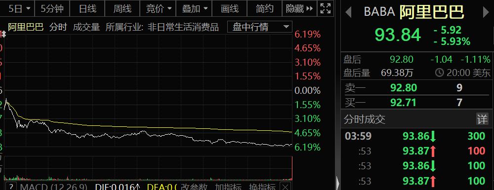 软银告诉英国《金融时报》,阿里巴巴的交易反映了其转向“防御模式”以应对更加不确定的商业环境,并补充说该公司将在 5 月份的季度业绩公告中提供交易细节。将近500亿人民币的空头头寸压顶,阿里巴巴的股价在美国市场随即出现了大跳水。收盘杀跌近6%。