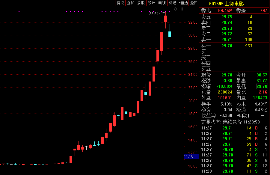上海电影自3月8日以来股价开启上涨通道,区间涨幅一度高达220%。
