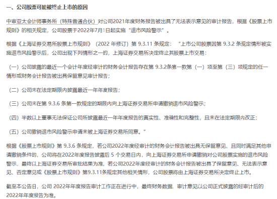 此前该股已连续14个交易日跌停,公司昨日晚间再次发布股票可能被终止上市的风险提示公告。