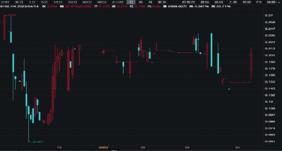 港银控股4月14日收于0.204港元, 涨32.47%。