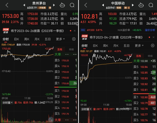 早盘中国移动大涨近5%,总市值超越贵州茅台。随后,A股“股王”争夺愈发激烈。尾盘贵州茅台强势上攻,收涨逾2%,最终以53亿元的优势“暂时”守住了“股王”宝座。