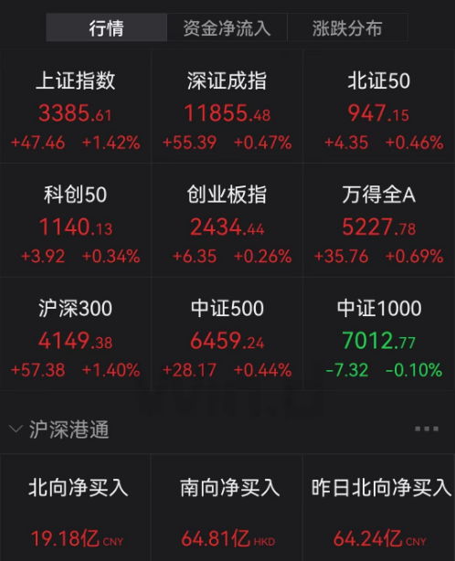 4月17日,A股“中特估”板块大爆发,助推沪指突破3月7日高点,创去年10月底反弹以来新高。截至收盘,沪指涨1.42%,深证成指涨0.47%,创业板指涨0.26%。北向资金全天净买入19.18亿元,其中沪股通净买入31.68亿元,深股通净卖出12.5亿元。
