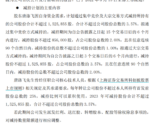 3、海天瑞声2023年4月17日晚间公告称,唐涤飞拟减持不超过3.57%股份。