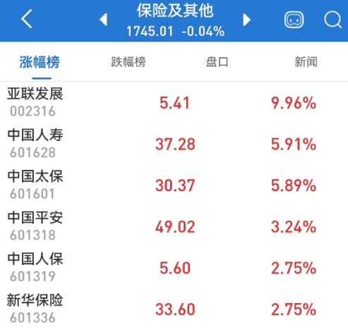 金融股近来频频走强,今日保险股接过券商股的领涨大旗,放量飙升逾4%,逼近年内最高点,半日成交超昨日全天成交。个股全线飘红,中国太保一度劲升逾6%,股价创1年半多来新高;中国人寿最多亦大涨超6%,开盘1小时成交就超昨日全天成交;中国平安、新华保险等涨幅居前。