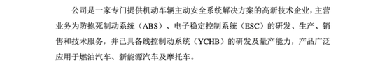 武汉元丰汽车电控系统股份有限公司(以下简称“元丰电控”)是一家专门提供机动车辆主动安全系统解决方案的高新技术企业,主营业务为防抱死制动系统(ABS)、电子稳定控制系统(ESC)的研发、生产、销售和技术服务,并已具备线控制动系统(YCHB)的研发及量产能力,产品广泛应用于燃油汽车、新能源汽车及摩托车。