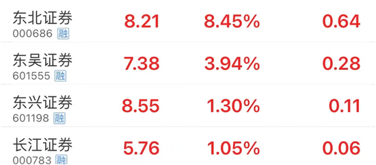 受一季度强势业绩的催化,券商板块今日持续火热,东北证券早盘再度冲击涨停。截至午间收盘,东北证券涨超8%,东吴证券、东兴证券、长江证券等涨幅居前。