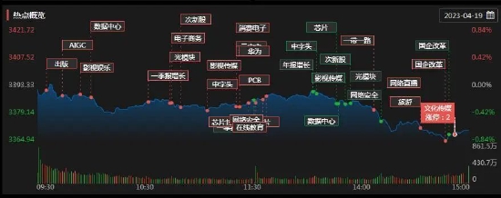 4月19日,在市场震荡调整中,热点继续轮动。从申万一级行业看,今日有3个行业实现上涨,传媒行业涨幅居首达1.12%,紧随其后的社会服务和计算机等行业均实现上涨。另外,建筑材料、房地产和美容护理等行业跌幅均超1.5%。