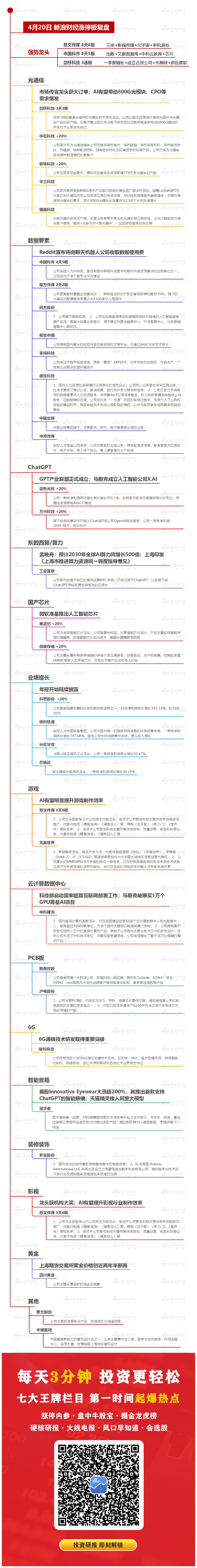 【4月20日沪深两市涨停分析】创业板指低开低走跌1.2%,多只AI概念股逆市创新高。
