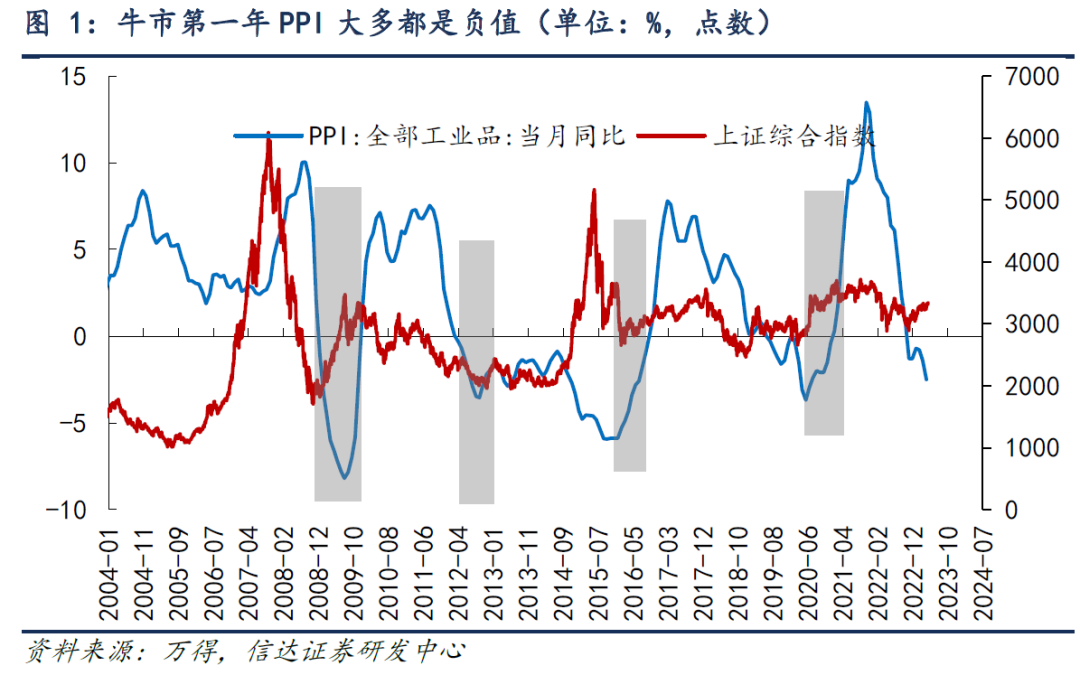 PPI和信贷、出口等数据的背离,恰恰是熊转牛初期的特征。如下图所示,2009、2013、2016和2019年,每一段行情初期的时候,PPI数据均为负值。