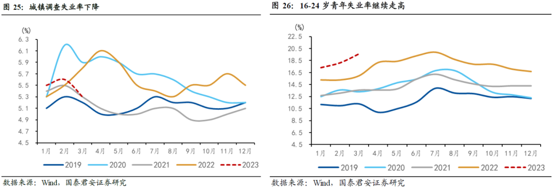 国泰君安证券认为,青年失业率主要反映高校毕业生的就业情况,而这部分群体的就业是经济活动的滞后反应,只有经济内生动力持续恢复,企业才能有更多应届生的岗位需求。