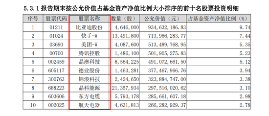 具体看,李晓星在一季度买入快手-W、美团-W、腾讯控股,截至一季度分别位列第二至第四大重仓股;此外一季度加仓的重仓股还有晶澳科技、德业股份、锦浪科技、晶科能源、东方电缆和航天电器。和2022年四季度末相比,紫光国微、智飞生物、药明生物、天齐锂业、宁德时代、海大集团、贝泰妮在一季度末退出了前十重仓之列。