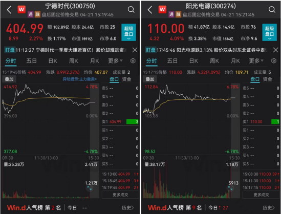 A股主要指数今日普跌。截至收盘,长江一级行业全部下跌,国防军工、食品饮料、农产品和电力新能源等板块跌幅较小。新能源板块跌幅靠后,主要贡献就在于宁德时代,今日上涨逾2%;阳光电源涨逾4%。