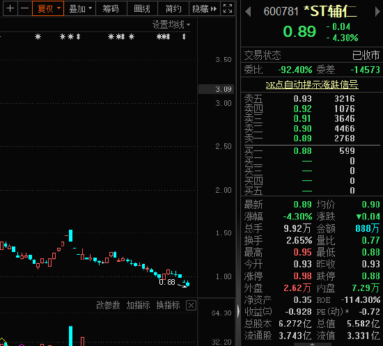 *ST辅仁还发布了关于公司股票可能被终止上市的第八次风险提示公告。据公告,公司已处于退市边缘,一方面,2022年公司业绩亏损面临着财务类退市风险;另一方面,在交易类的面值退市的规定下,公司也面临着风险。